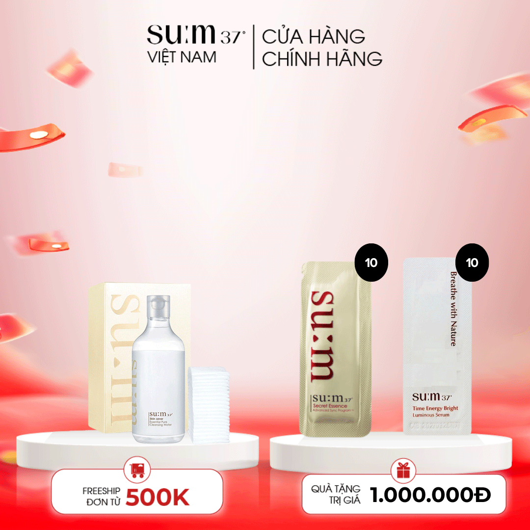 Nước tẩy trang su:m37 Skin Saver Essential Pure Cleansing Water đa tính năng chứa thành phần lên men tự nhiên, giúp làm sạch bụi bẩn bám sâu trong lỗ chân lông và lớp trang điểm chỉ trong một bước, mang lại một làn da khỏe mạnh, mịn màng hơn. Sản phẩm làm sạch 3 tính năng: tẩy trang, làm sạch da và nước hoa hồng, tẩy trôi hoàn toàn lớp trang điểm chỉ với 1 bước duy nhất.